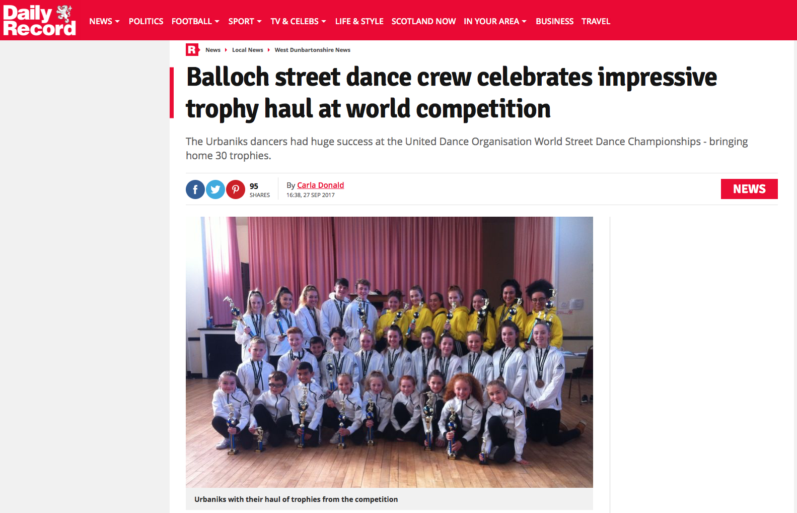 Balloch Street Dance Crew Celebrates Impressive Trophy Haul at UDO World Street Dance Championships 2017
